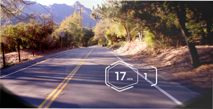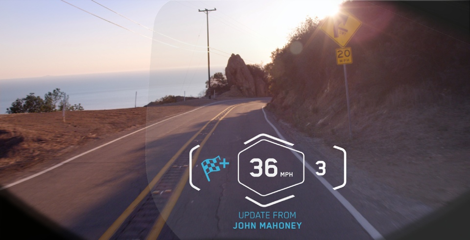 Head-up display helmet: road information always in your sights. The BMW head-up display projects necessary or desirable traffic or vehicle information directly into the rider's field of view, allowing him/her to maintain constant observation of the traffic on the road, with no distraction. This would appear even more important with motorcycles than it is with cars. A camera oriented towards the rear could at some point in the future perform the function of a 'digital rear-view mirror'. And last but not least, this technology also enables the visualisation of other riders in a motorcycle group. This enables the rider to see where his companions are at any given moment.